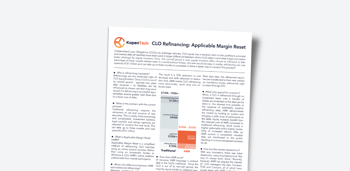 Learn how to participate in an auction-based, multi-dealer CLO refinancing (AMR).