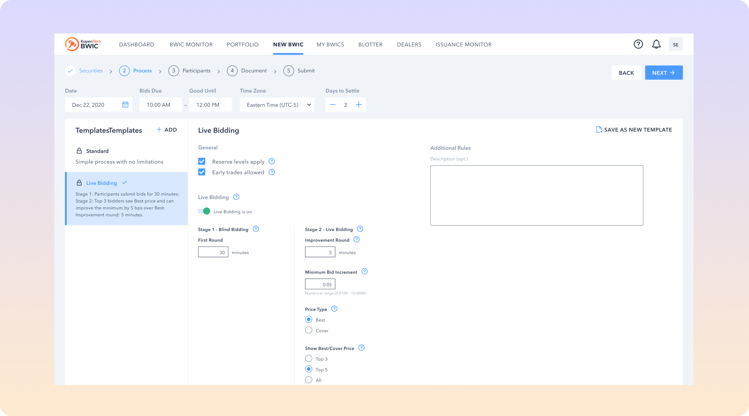 New BWIC Selling Protocol - LiveBidding